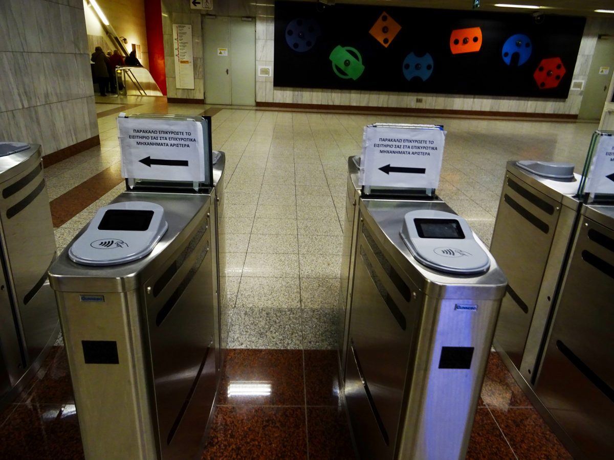 Οι πύλες ανοίγουν και μπορείτε να περάσετε. Αν δεν ανοίξουν, σημαίνει ότι η χρονική ισχύς του κομίστρου έχει λήξει ή δεν είναι το κατάλληλο για την συγκεκριμένη διαδρομή (π.χ. αεροδρομίου) ή το χρηματικό υπόλοιπο δεν επαρκεί, οπότε ζητάτε την συνδρομή του Υπεύθυνου Σταθμού πιέζοντας το κομβίο που βρίσκεται στην πύλη.