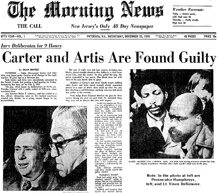 Οι μάρτυρες, αν και με «λερωμένο» ποινικό μητρώο έγιναν πιστευτοί, κατεθέτοντας ψευδώς ότι αναγνώρισαν τον Κάρτερ ως τον έναν από τους δύο εκτελεστές.