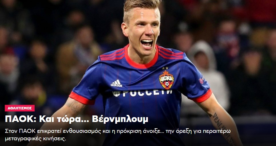 “Και τώρα… Βέρνμπλουμ” ήταν ο τίτλος του χθεσινού δημοσιεύματος του pagenews.gr και λίγες ώρες αργότερα έγινε γνωστό πως ο Σουηδός χαφ έκανε δεκτή την πρόταση του δικεφάλου και σήμερα θα βρίσκεται στη Θεσσαλονίκη για να γίνει και επίσημα παίκτης του ΠΑΟΚ.