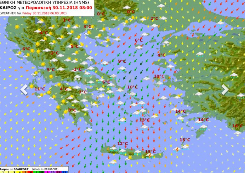 Καιρός: Η πρόγνωση για σήμερα Παρασκευή (30/11/18)