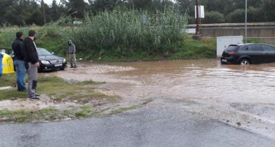 Στο Ρέθυμνο πολλοί δρόμοι πλημμύρισαν ενώ στην περιοχή του Κουμπέ, απέναντι από το στρατόπεδο, ο δρόμος που οδηγεί στο Πανόραμα έχει σχεδόν κλείσει.