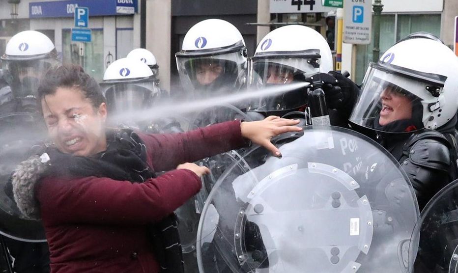 Οι διαδηλωτές βρίσκονταν τις πρώτες απογευματινές ώρες στη «μικρή ζώνη», έναν αστικό δρόμο ταχείας κυκλοφορίας που περιβάλλει το ιστορικό κέντρο των Βρυξελλών.