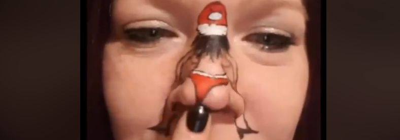 Τι έκανε; Ζωγράφισε την μύτη της σέξι γυναίκα ντυμένη “Άγιος Βασίλης” και στη συνέχεια λικνίστηκε στους ρυθμούς του “Jingle Bells”, κουνώντας τα “οπίσθια” της σαν Λατίνα χορεύτρια.