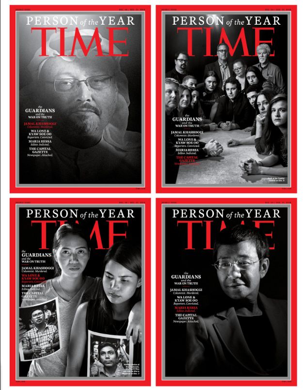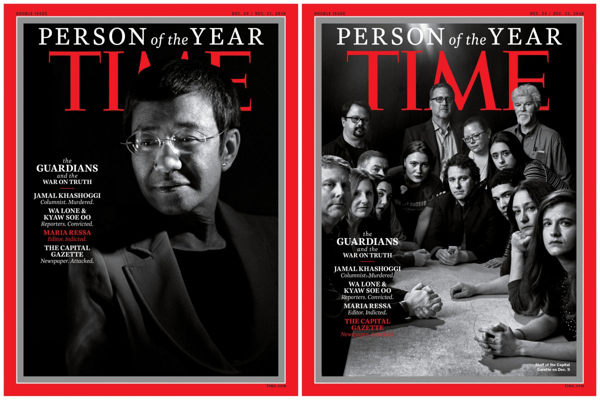 Το Time επέλεξε να εκδώσει αυτή την εβδομάδα τέσσερα διαφορετικά εξώφυλλα του περιοδικού για να προβάλει τους τέσσερις δημοσιογράφους ή την ομάδα των δημοσιογράφων που βρέθηκαν στην κορυφή της κατάταξής του.