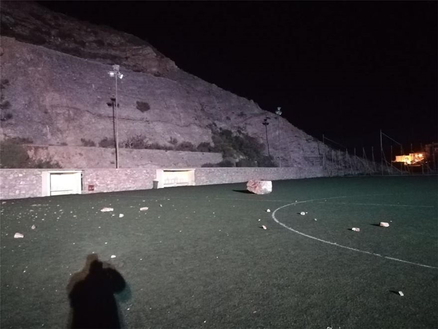 Κατολίσθηση βράχων σημειώθηκε το βράδυ της Τρίτης (9/4/19) στο ποδοσφαιρικό γήπεδο της Άνω Σύρου, σκορπώντας τον πανικό.