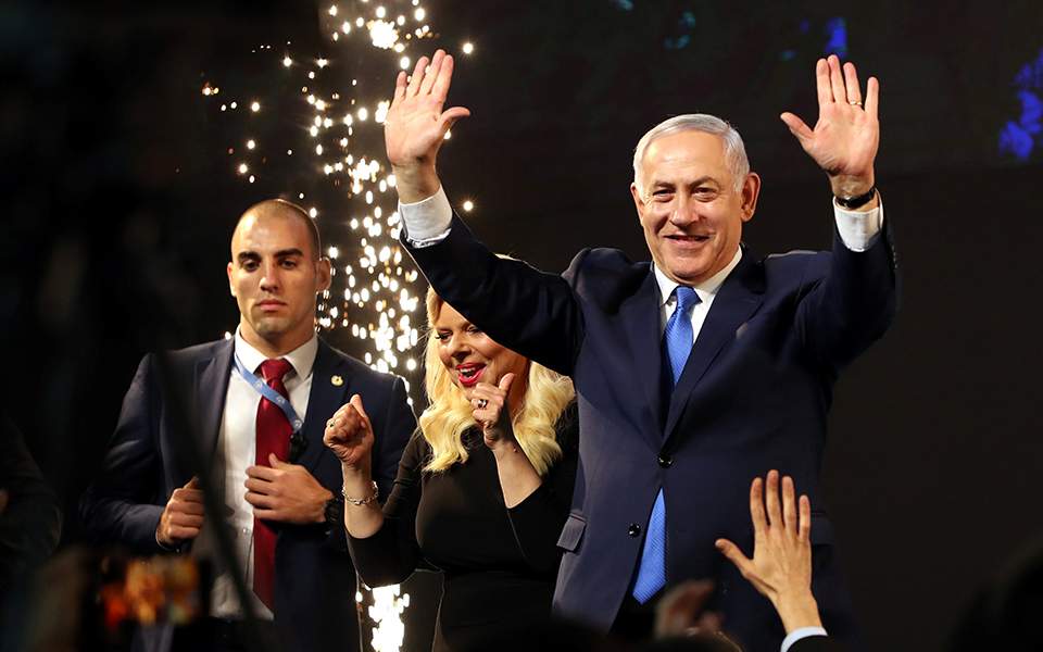 Απευθυνόμενος σε υποστηρικτές του στο Τελ Αβίβ και έχοντας στο πλευρό του τη σύζυγό του Σάρα, ο 69χρονος πρωθυπουργός του Ισραήλ ευχαρίστησε τους υποστηρικτές του κάνοντας λόγο για «νύχτα μιας μεγάλης νίκης».