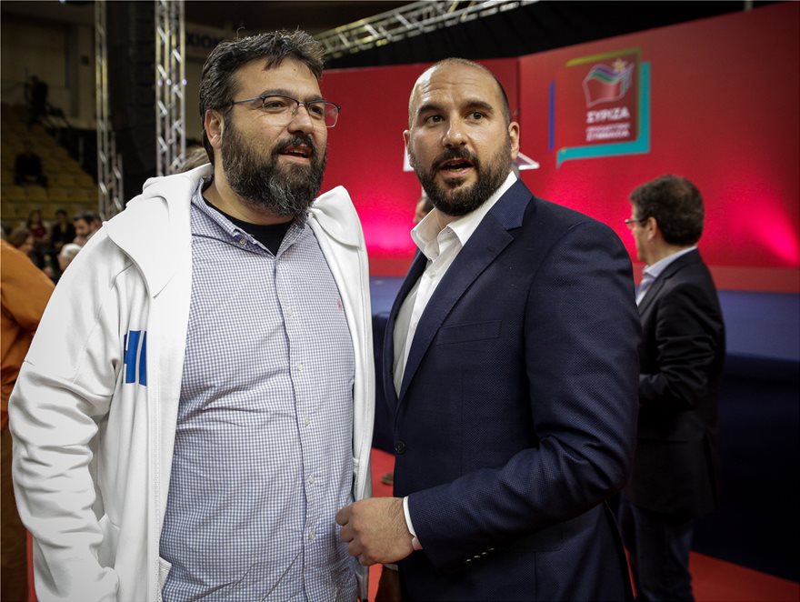 Ανάμεσά τους στο κλειστό του Απόλλωνα, η υπουργός Εργασίας Έφη Αχτσιόγλου, ο υπουργός Επικρατείας και κυβερνητικός εκπρόσωπος Δημήτρης Τζανακόπουλος, η αναπληρώτρια υπουργός Εξωτερικών Σία Αναγνωστοπούλου και ο υφυπουργός Αθλητισμού Γιώργος Βασιλειάδης.