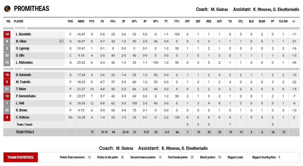 Οι παίκτες του Παναθηναϊκού μπήκαν στο ματς αποφασισμένοι να τελειώσουν τη δουλειά όσο πιο νωρίς μπορούσαν και δεν άφηνα κανένα περιθώριο στον Προμηθέα για να αντιδράσει. Με πολλή πίεση πάνω στη μπάλα, με γρήγορες επιθέσεις και τον Καλάθη να μοιράζει ασίστ (είχε 9 στο ημίχρονο) προηγήθηκαν με 35-8 στο 11’ και έβαλαν τις βάσεις για τη νίκη τους.