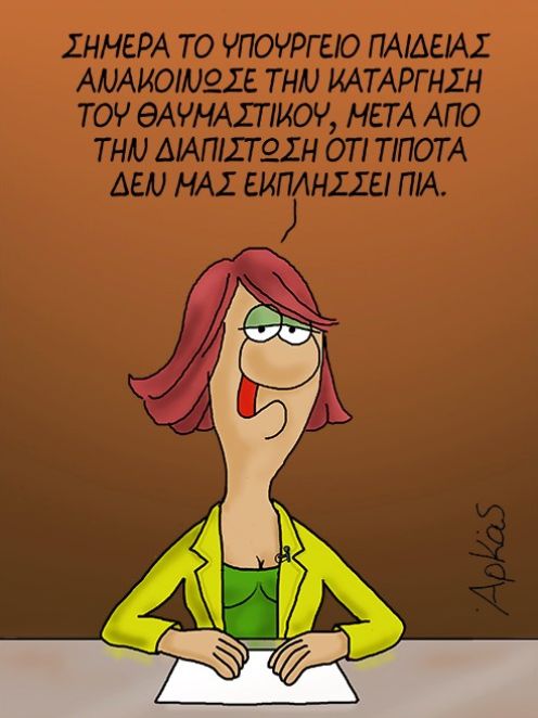 Αρκάς: Ο γνωστός σκιτσογράφος συνεχίζει ακάθεκτος να παρουσιάζει τα μηνύματά του, μέσα από τους επιτυχημένους χαρακτήρες των σκίτσων του. Η πολιτική επικαιρότητα, οι εξαγγελίες της κυβέρνησης αλλά και η λογική των πολιτών/ψηφοφόρων, αποτελούν αγαπημένα θέματά του. Παλαιότερα, βλέπαμε τις δημιουργίες του μέσα από τις εκδόσεις εφημερίδων και περιοδικών, ενώ τα τελευταία χρόνια, ο Αρκάς ¨μονοπωλεί” τους τοίχους μας στο Facebook. Αυτή τη φορά, ο Αρκάς επανήλθε με “διπλό” χτύπημα, το οποίο έχει ως έμμεσο αποδέκτη την κυβέρνηση.