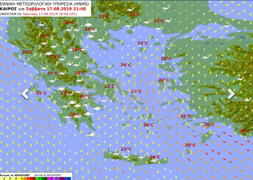 - Ανεμοι: Από βόρειες διευθύνσεις 3 με 4 και στα ανατολικά τοπικά 5 μποφόρ.