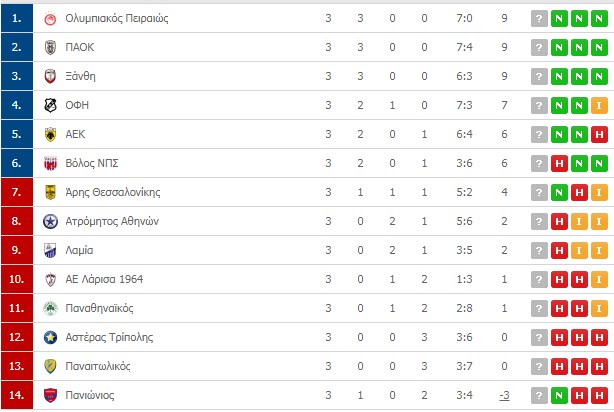 Super League: Ολοκληρώθηκε η τρίτη “στροφή” του πρωταθλήματος, η οποία βρίσκει τους Ολυμπιακό, ΠΑΟΚ και Ξάνθη “συγκάτοικους” στην κορυφή. Οι ερυθρόλευκοι επικράτησαν άνετα του Βόλου στο “Γ. Καραϊσκάκης” με σκορ 5-0, ενώ ο ΠΑΟΚ πήρε δύσκολο “διπλό” από τον Ατρόμητο στο Περιστέρι (3-0). Ακολουθεί ο ΟΦΗ, που επικράτησε του Παναιτωλικού στην έδρα του με 3-1 και η ΑΕΚ, που νίκησε τη Λαμία με 2-0 στο ΟΑΚ. Στην έκτη θέση ο Βόλος, έβδομος ο Άρης, έπειτα από τη μεγάλη νίκη επί του Παναθηναϊκού με 4-0 στο Κλεάνθης Βικελίδης. Οι πράσινοι κατρακύλησαν στην ενδέκατη θέση, έχοντας μόλις έναν βαθμό.