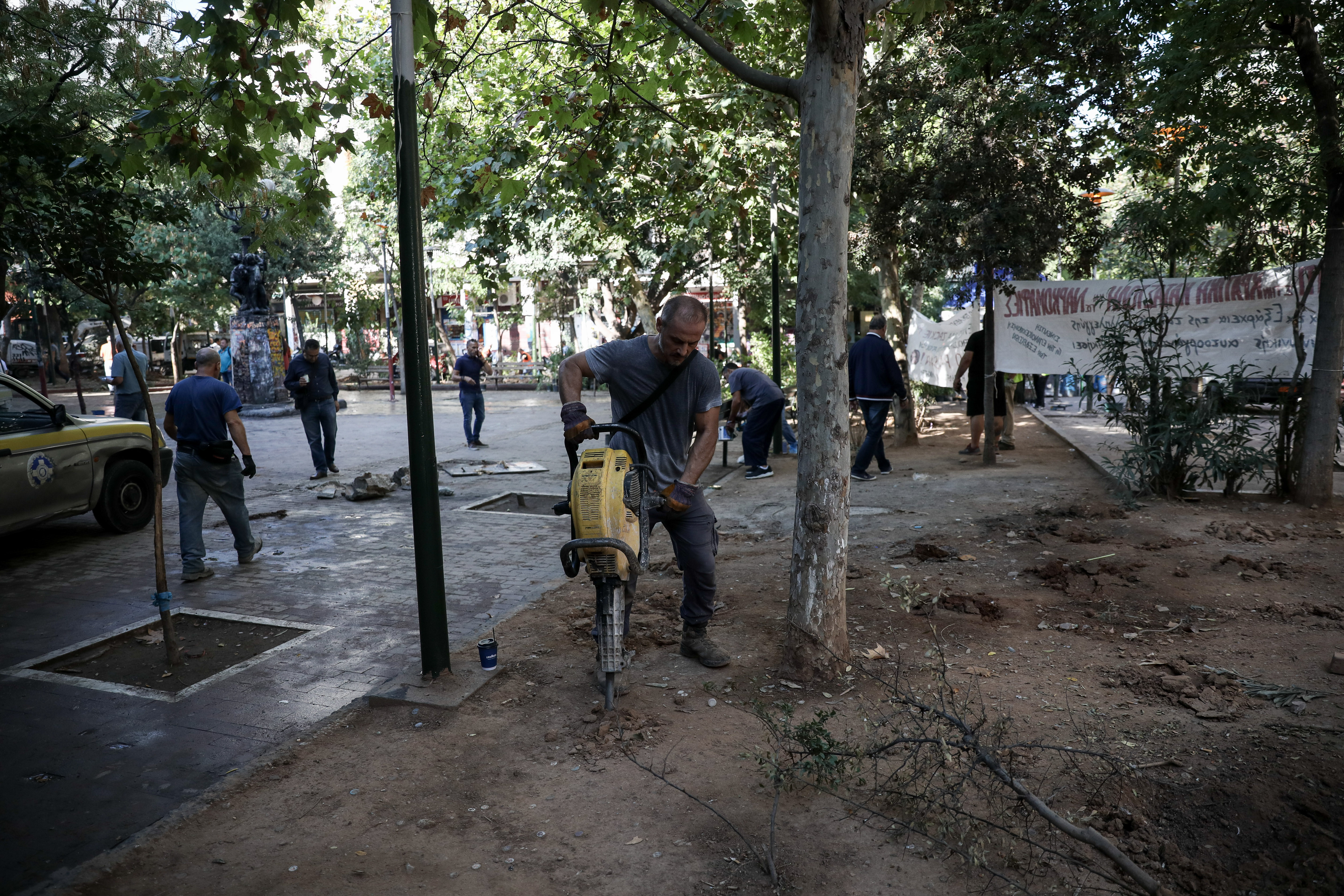 Συνεργεία του Δήμου Αθηναίων βρίσκονται από το πρωί της Πέμπτης στην πλατεία Εξαρχείων καθώς πραγματοποιούνται έργα ανάπλασης της περιοχής. Σύμφωνα με την ενημέρωση θα μπει πράσινο και θα αντικατασταθούν οι κολώνες φωτισμού, ενώ τα συνεργεία του δήμου θα παραμείνουν για να εργαστούν στην πλατεία όσο διάστημα χρειαστεί.