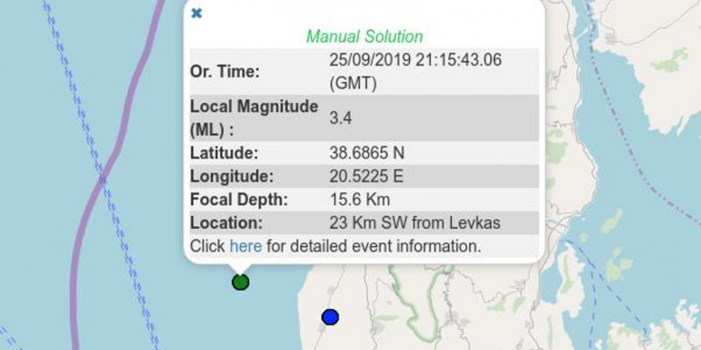 Σεισμός στη Λευκάδα: Ισχυρή δόνηση μεγέθους 3,4 βαθμών της κλίμακας Ρίχτερ, σημειώθηκε λίγο μετά τα μεσάνυχτα της Τετάρτης, σε θαλάσσια περιοχή, ανοιχτά της Λευκάδας. Πιο συγκεκριμένα, ο σεισμός σημειώθηκε στις 00:15, με το επίκεντρό του να εντοπίζεται στα 23 χιλιόμετρα νοτιοδυτικά της Λευκάδας, όπως αναφέρει το Γεωδυναμικό Ινστιτούτο Αθηνών.