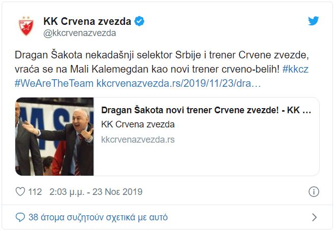 Οι άνθρωποι της Σέρβικης ομάδας έκαναν πρόταση στον έμπειρο τεχνικό που απάντησε θετικά και θα επιστρέψει στο κορυφαίο επίπεδο του Ευρωπαϊκού μπάσκετ. Ο Σάκοτα επιστρέφει για να δουλέψει στην πατρίδα του μετά από 12 χρόνια αφού την τελευταία φορά είχε κάτσει ξανά στον πάγκο του Ερυθρού Αστέρα το 2007.
