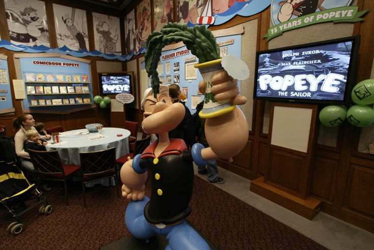 Όταν δε οι σπανακοπαραγωγοί τού έστησαν εκείνο το άγαλμα στην Κρίσταλ Σίτι το 1937, ήταν φυσικά η πρώτη φορά στην παγκόσμια ιστορία που ένας καρτουνίστικος ήρωας γινόταν άγαλμα!