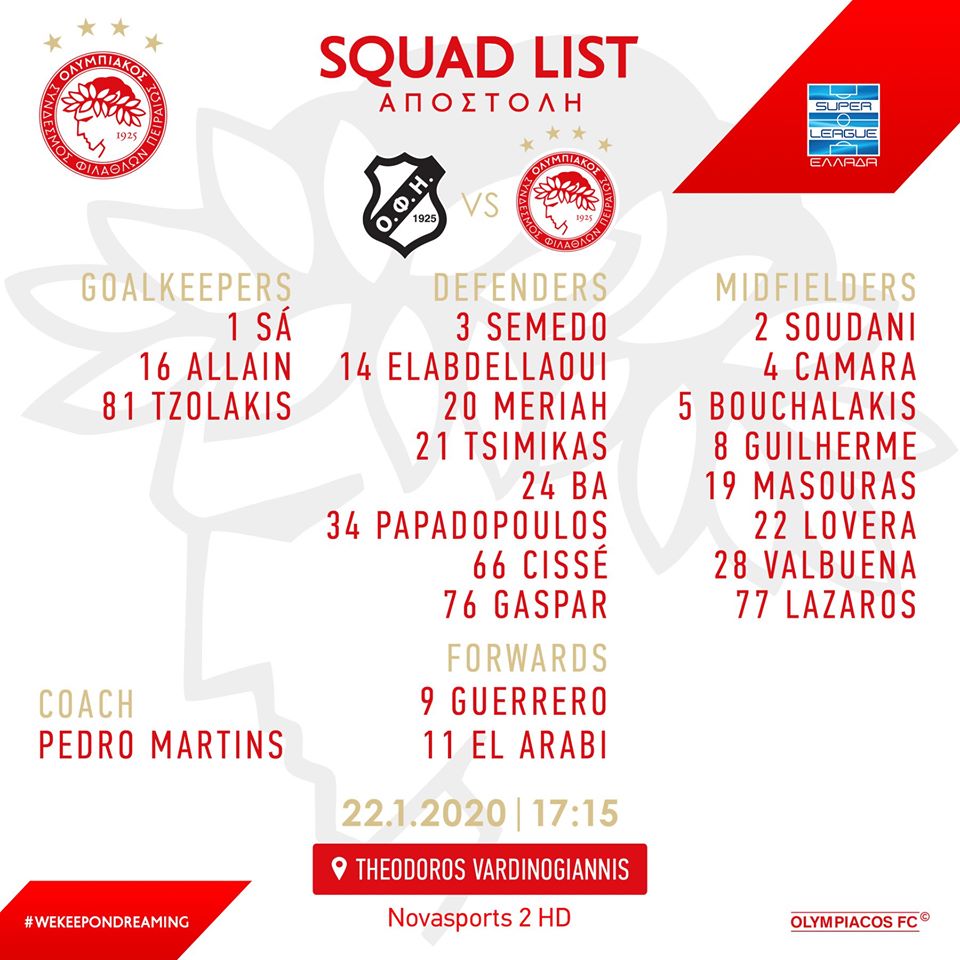 Αναλυτικά η αποστολή για το παιχνίδι με τον ΟΦΗ: