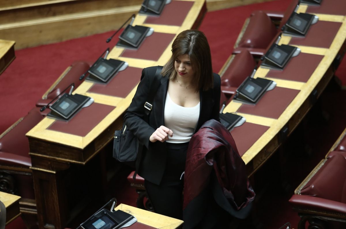 Όμως μία ήταν εκείνη που έκλεψε τις εντυπώσεις. Πρόκειται για την Κατερίνα Νοτοπούλου, η οποία εμφανίστηκε με μαύρο παντελόνι και μαύρο σακάκι τα οποία συνδύασε με ένα λευκό μπλουζάκι. Η όμορφη βουλευτής του ΣΥΡΙΖΑ εντυπωσίασε με την εμφάνισή της και έκανε τα φωτογραφικά φλας να μην σταματούν δευτερόλεπτο. Όλα τα πηγαδάκια των βουλευτών είχαν μια καλή κουβέντα να πουν για την εντυπωσιακή πραγματικά εμφάνισή της.