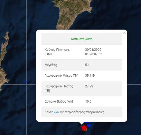 Ισχυρός σεισμός στην Κάρπαθο το μεσημέρι της Τετάρτης