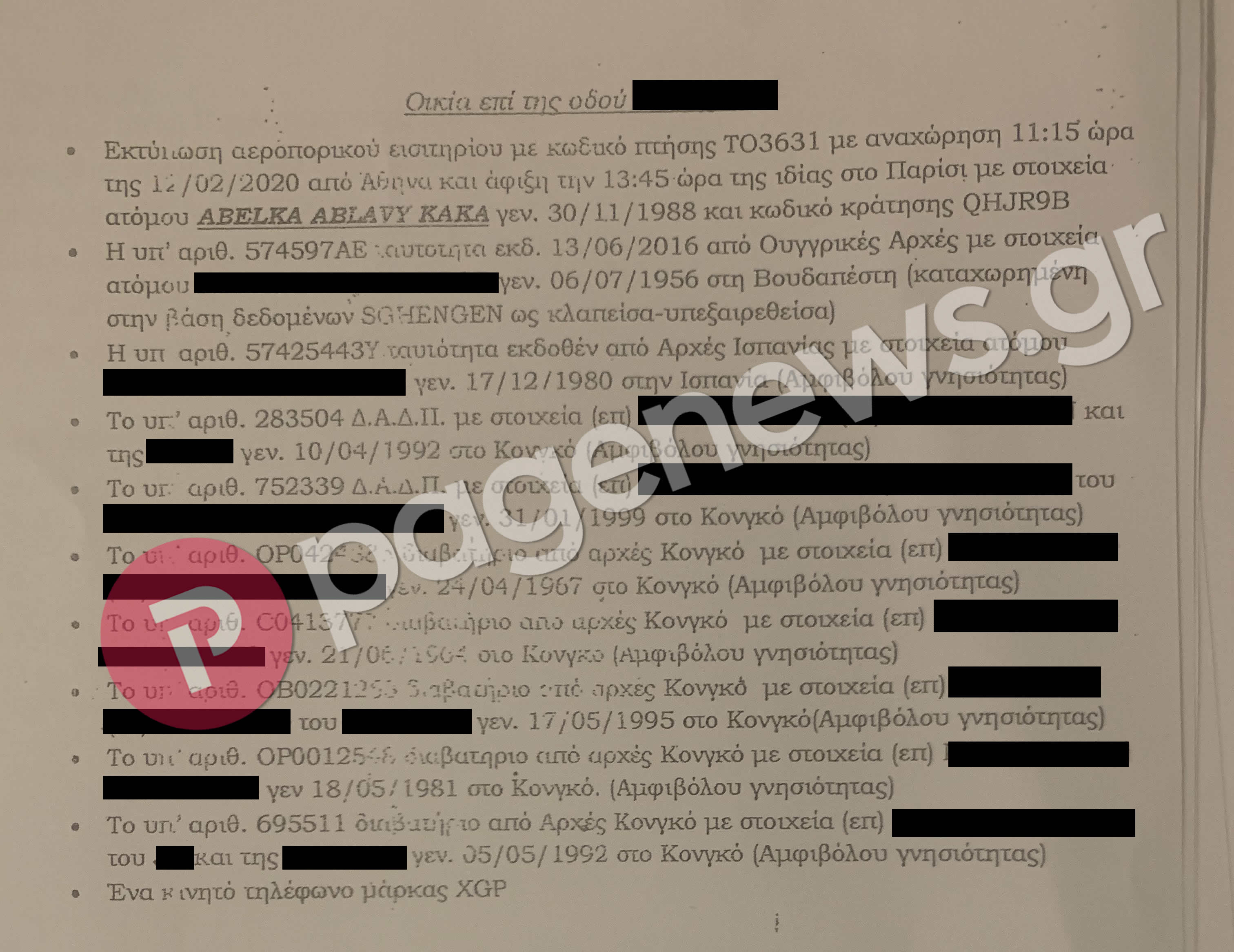 - Έξι διαβατήρια και ακόμη δύο έγγραφα από τις αρχές του Κονγκό που χαρακτηρίζονται ως αμφιβόλου γνησιότητας.