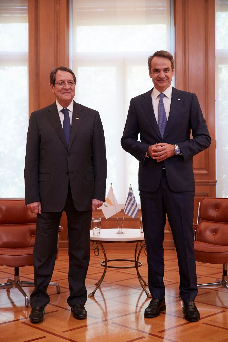 «Φίλε Πρωθυπουργέ, αγαπητέ μου Κυριάκο, είναι πραγματικά με ιδιαίτερη χαρά που επισκέπτομαι την Αθήνα, αλλά και με ιδιαίτερη ικανοποίηση για τα αποτελέσματα των επαφών μας. Επαφές οι οποίες είχαν ως στόχο, όπως συνήθως γίνεται σε κρίσιμα προβλήματα που αντιμετωπίζουμε, είτε στην Ευρώπη, είτε και με τις ιδιαιτερότητες είτε της Ελληνικής Δημοκρατίας είτε της Κυπριακής Δημοκρατίας. Με ιδιαίτερη ικανοποίηση αντιμετωπίζουμε τα τρία θέματα που έθιξε ο φίλος Πρωθυπουργός.