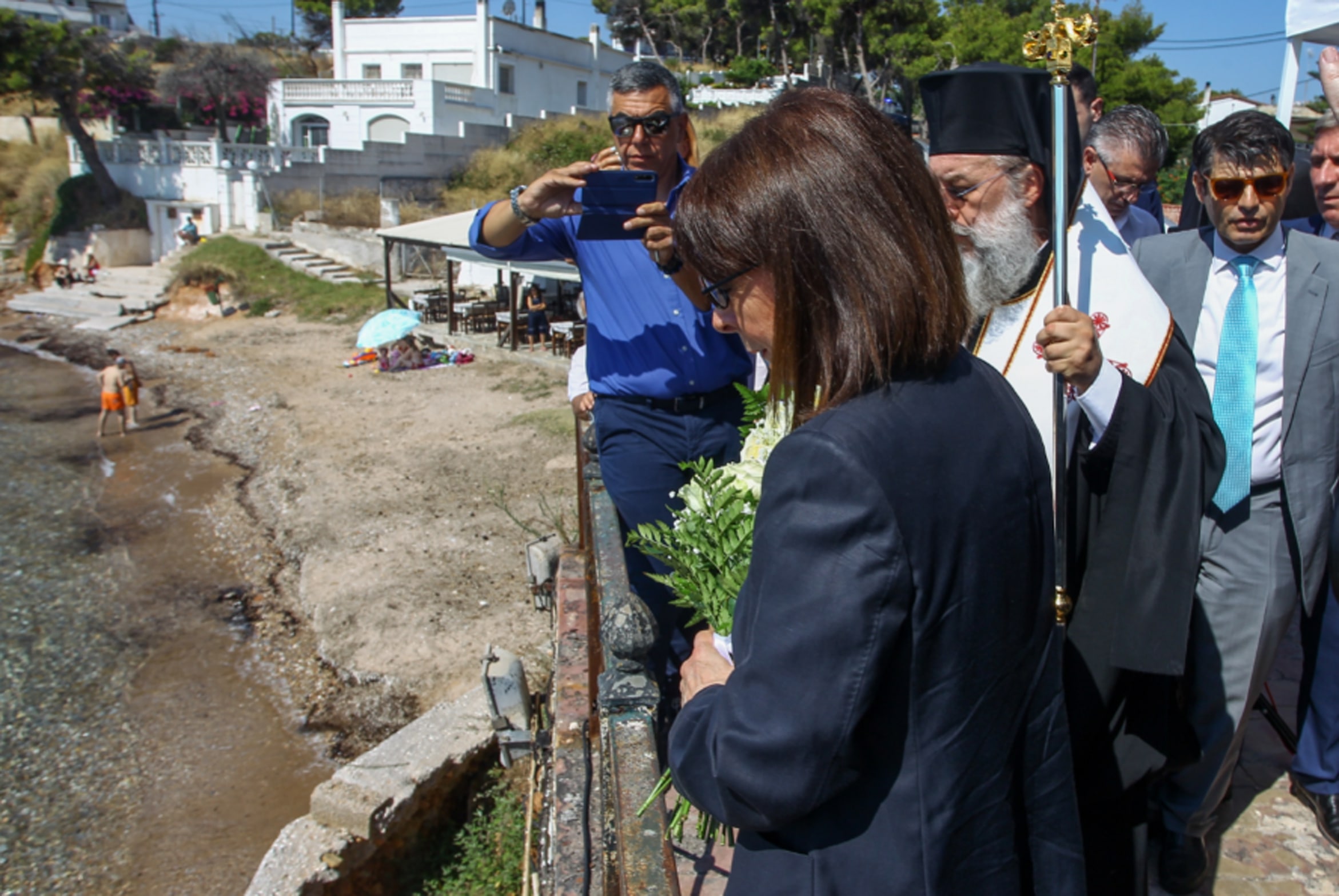 Από το πρωί στον Ι.Ναό Κοιμήσεως της Θεοτόκου στο Μάτι Αττικής τελείται Αρχιερατική Θεία Λειτουργία και Επιμνημόσυνη Δέηση από τον Μητροπολίτη Κηφισίας Αμαρουσίου και Ωρωπού κ. Κύριλλο, παρουσία της Προέδρου της Δημοκρατίας, Κατερίνας Σακελλαροπούλου στη μνήμη των θυμάτων της καταστροφικής πυρκαγιάς.
