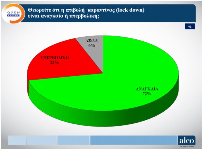 Για το αν το lockdown ήταν αναγκαίο, το 72% θεωρεί πως ήταν, με το 22% να το θεωρεί υπερβολικό.
