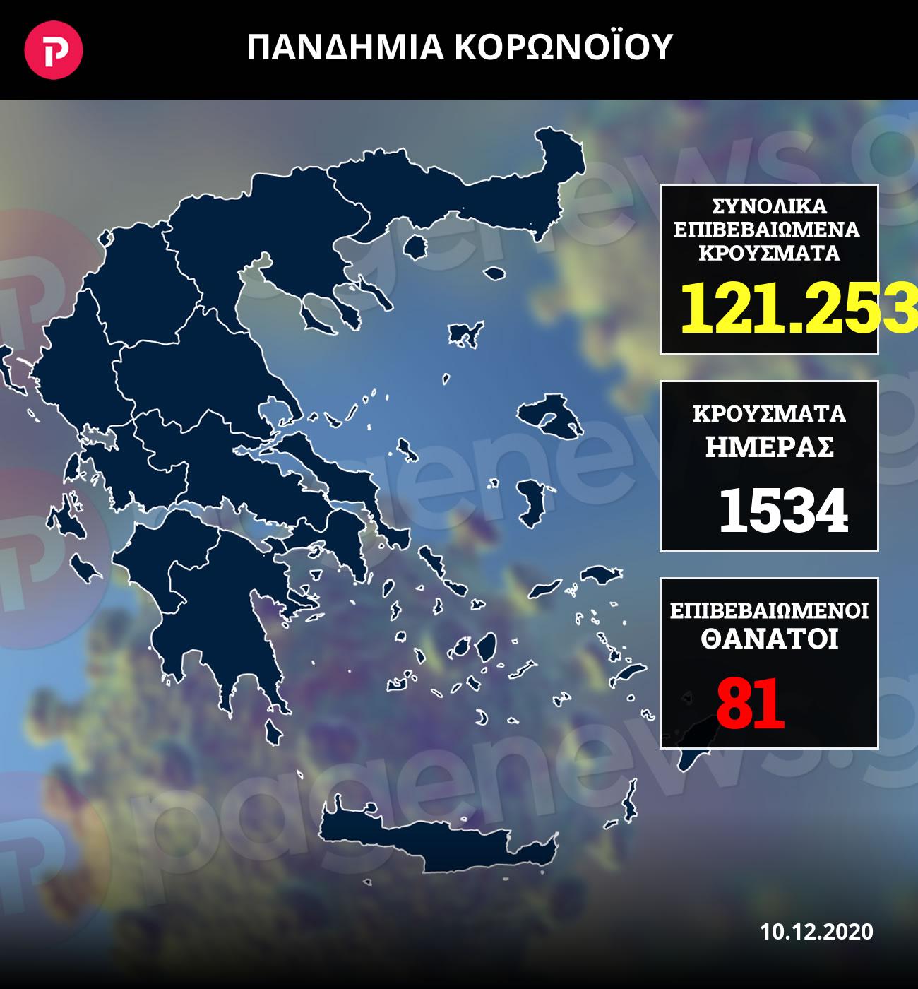 Στους ανήλθαν οι 81 νεκροί στη χώρα μας το τελευταίο 24ωρο. Ο αριθμός των διασωληνωμένων σήμερα είναι στους 571 , και ο συνολικός αριθμός των κρουσμάτων από την αρχή της επιδημίας έφτασε πλέον τους 121253 , όπως μπορείτε να δείτε και στο παρακάτω Infographic.