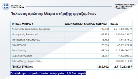- Αναστολές συμβάσεων εργασίας: 2,4 δις. ευρώ σε 1,13 εκατ. μοναδικούς ωφελούμενους