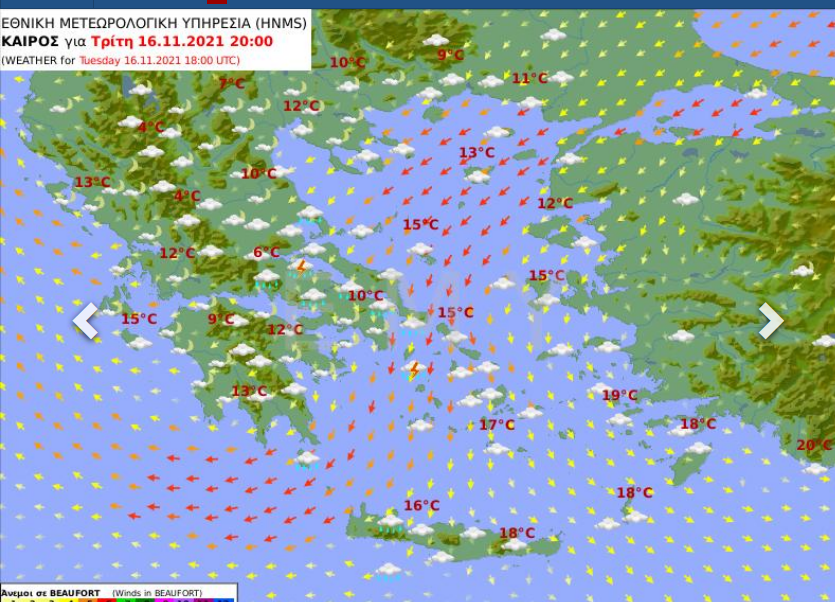 Καιρός: Λίγες νεφώσεις, τοπικά αυξημένες κυρίως στα βόρεια. Ανεμοι: Στα βόρεια βορειοανατολικοί 5 με 7 μποφόρ. Στα νότια βόρειοι βορειοδυτικοί 4 με 5 μποφόρ. Θερμοκρασία: Από 16 έως 21 βαθμούς Κελσίου. Στα νησιά του ανατολικού Αιγαίου 3 με 4 βαθμούς χαμηλότερη.