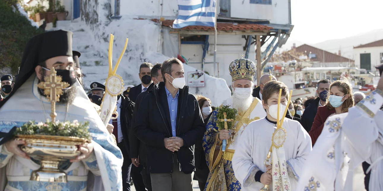 Ο Πρωθυπουργός Κυριάκος Μητσοτάκη στην τελετή Αγιασμού των Υδάτων στον Άγιο Ευστράτιο, Πέμπτη 6 Ιανουαρίου 2022.