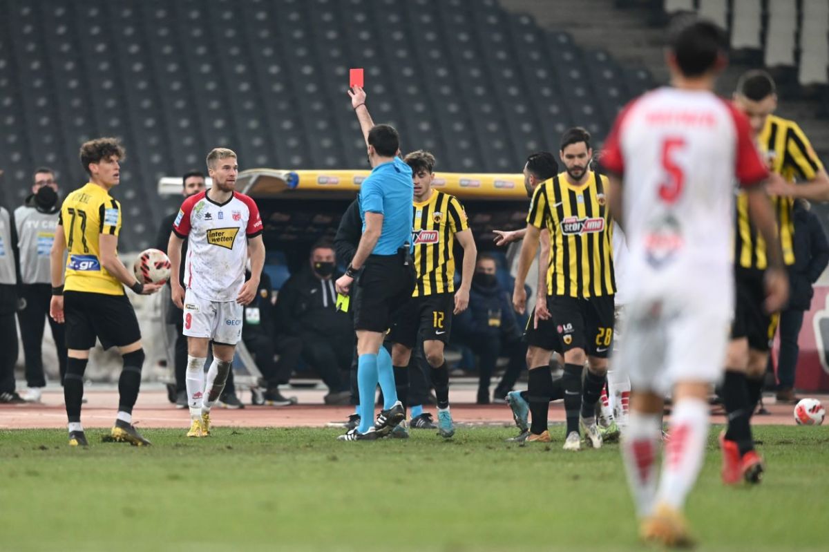 Με την έναρξη του δεύτερου μισού του παιχνιδιού πάλι ο Βόλος απείλησε άμεσα (50΄) με τον Στάνκοβιτς να νικάει σε τέτ α τετ τον Φαν Βέερτ διορθώνοντας δικό του λάθος. Η εικόνα της ΑΕΚ επιδεινώθηκε ραγδαία στο β΄ ημίχρονο. Ο χρόνος κυλούσε και ο Γιαννίκης δεν είχε ποιοτικές λύσεις στον πάγκο για αλλάξει τα δεδομένα. Από την άλλη ο Βόλος, παρά και τις δικές του απουσίες, έδειχνε να ελέγχει το ματς και στο 85΄ πήρε το προβάδισμα. Ο Τζαβέλας έκανε ένα μεγάλο λάθος μαρκάροντας με τον αγκώνα προτεταμένο στο πρόσωπο του Ρίνερ. Πέναλτι το οποίο καταλόγισε ο διαιτητής αφού συμβουλεύτηκε το VAR και που αξιοποίησε ο Φαν Βέερτ. Λίγο αργότερα ο σκόρερ αποβλήθηκε με δεύτερη κίτρινη κάρτα κι έτσι η ΑΕΚ είχε περίπου ένα δεκάλεπτο (μαζί με τις καθυστερήσεις) για να αποφύγει ακόμα μία οδυνηρή ήττα.