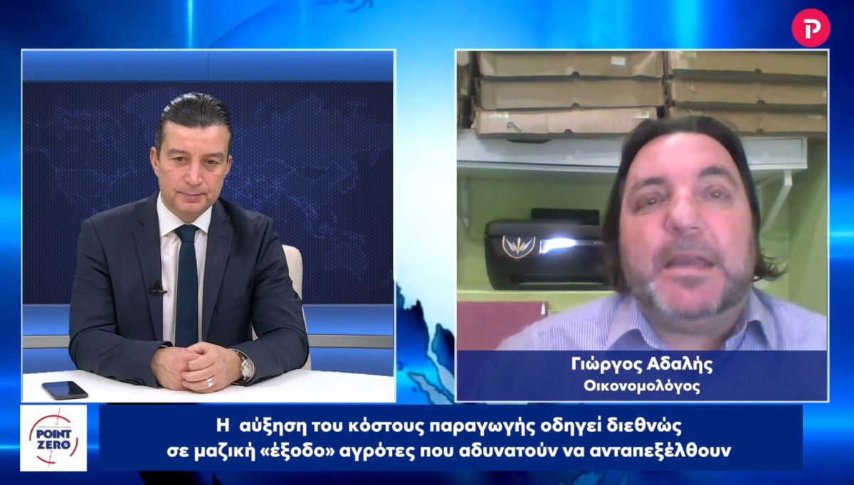 Ο Γιώργος Αδαλής στο pagenews.gr, μιλάει στον Λάμπρο Καλαρρύτη και την εκπομπή Point Zero, για την αύξηση του ενεργειακού κόστους, την απόγνωση των παραγωγών, τις ελλείψεις και τις συνεχείς ανατιμήσεις σε είδη διατροφής πρώτης ανάγκης. Η αύξηση των τιμών της ενέργειας, είναι κάτι το οποίο θα οδηγήσει σε εξελίξεις ολόκληρο τον πλανήτη. Όχι μόνο στον τομέα των καυσίμων, αλλά οπωσδήποτε και των τροφίμων. Σε πολλά μέρη του κόσμου, παρατηρούνται ήδη, ελλείψεις κάποιων βασικών προϊόντων από τα ράφια.