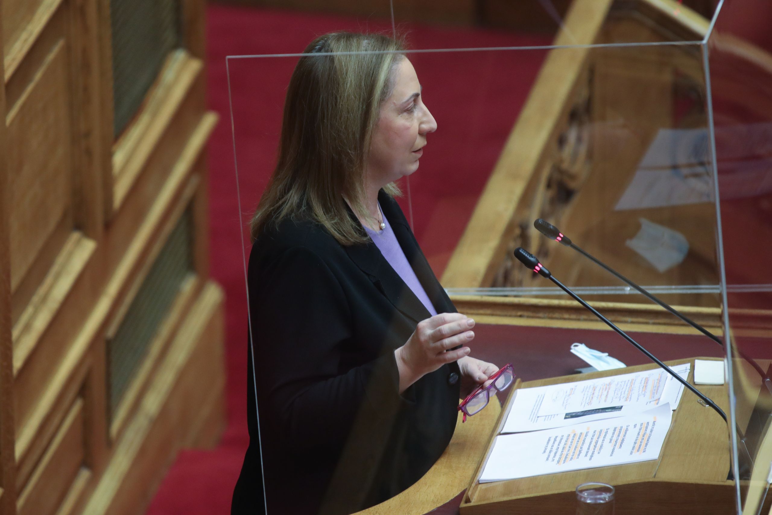 «Η κυβέρνηση Μητσοτάκη προχώρησε σήμερα στην τρίτη πράξη της αντιδραστικής τριλογίας εις βάρος των εργαζομένων, των ασφαλισμένων, των συνταξιούχων και του δημοσίου συμφέροντος», αναφέρει η κ. Ξνογιαννακοπούλου.