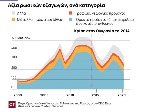 Το μεγαλύτερο μέρος των εσόδων της Ρωσίας από εξαγωγές προέρχεται από ορυκτά, όπως το πετρέλαιο, το φυσικό αέριο και ο άνθρακας. Για τον λόγο αυτό, οι εξαγωγές ενέργειας αποτελούν ελκυστικό στόχο για κυρώσεις.