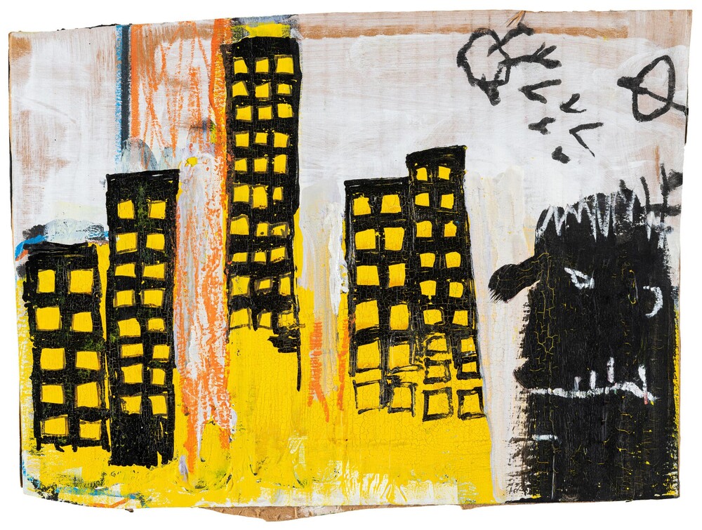 Έργο από τη συλλογή του Μάμφορντ, που θεωρείται ότι είναι του Μπασκιά. «Άτιτλο (κίτρινα και μαύρα κτίρια)», 1982. Φωτο: Orlando Museum of Art