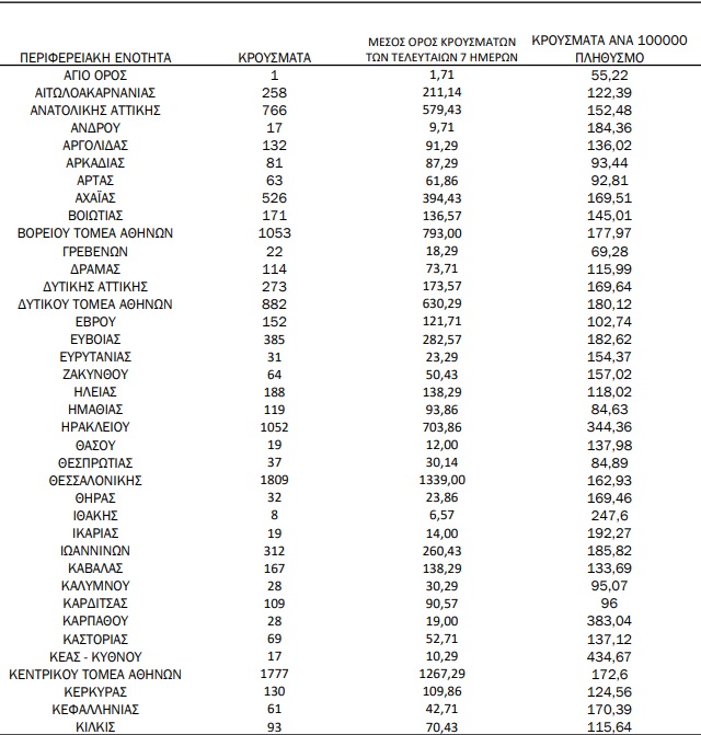 Ειδικότερα, στην Αττική τα κρούσματα κατανέμονται ως εξής: