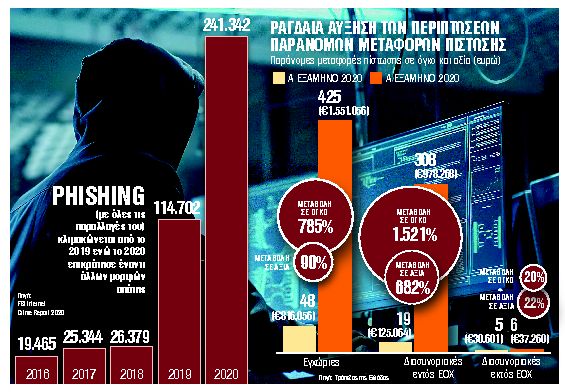 Υπενθυμίζεται ότι προκειμένου να παταχθούν οι ηλεκτρονικές απάτες, οι οποίες αυξήθηκαν στη διάρκεια των lockdowns (όταν και μεγάλωσε απότομα ο αριθμός όσων χρησιμοποίησαν το e-banking), συστήθηκε ειδική ομάδα εργασίας στο υπουργείο Προστασίας του Πολίτη τον περασμένο Νοέμβριο, με τον συντονισμό της Ελληνικής Αστυνομίας, της Τράπεζας της Ελλάδος, της Ενωσης Ελληνικών Τραπεζών και άλλων συναρμόδιων υπηρεσιών.