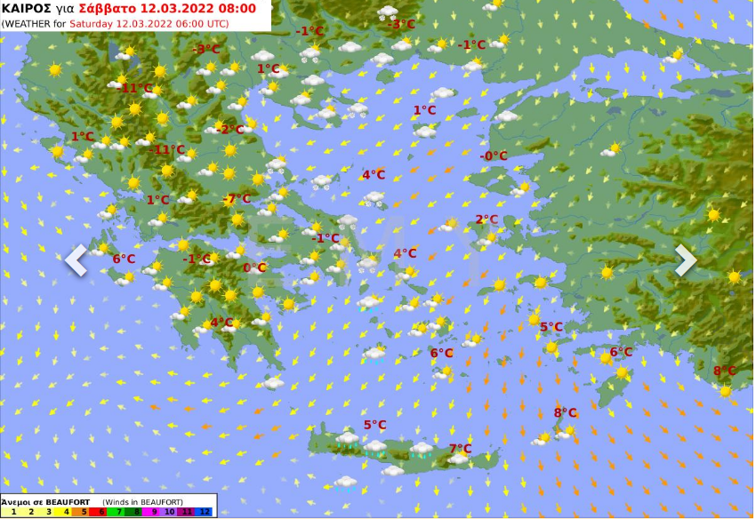 Χιονοπτώσεις κατά τόπους πυκνές στην Εύβοια, τις Σποράδες, την ανατολική ηπειρωτική χώρα και τα ορεινά και ημιορεινά της Κρήτης. Οι άνεμοι θα πνέουν στα δυτικά από ανατολικές διευθύνσεις και στα ανατολικά από βόρειες με ένταση έως 6 μποφόρ. Η θερμοκρασία θα παραμείνει σε πολύ χαμηλά για την εποχή επίπεδα. Ισχυρός παγετός θα σημειωθεί τις πρωινές και βραδινές ώρες κατά τόπους στη βορειοδυτική ηπειρωτική χώρα.