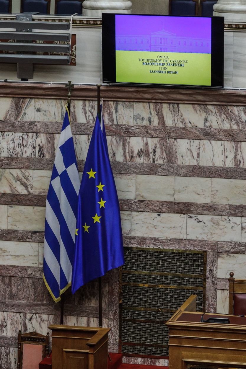 Τη διαδικασία άνοιξε ο Πρόεδρος της Βουλής, Κώστας Τασούλας, με μια σύντομη προσφώνηση, ο οποίος καλωσόρισε τον πρόεδρο της Ουκρανίας ενώ αναφέρθηκε και σε όλα όσα συμβαίνουν στην Ουκρανία.