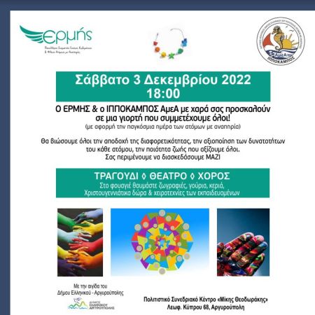 « Παγκόσμια Ημέρα των Ατόμων με Αναπηρία» η 3 η του Δεκεμβρίου και το Κέντρο ΑμεΑ «ΕΡΜΗΣ» μαζί με τον Αθλητικό όμιλο «ΙΠΠΟΚΑΜΠΟΣ ΑμεΑ», υπό την αιγίδα του Δήμου Ελληνικού –
