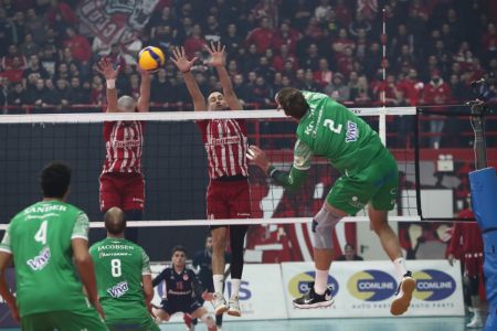 Οι «πράσινοι» βρέθηκαν ξανά στο +2 (15-17), ωστόσο ένας μπλοκ του Ιντάλγκο στον Κόβαρ άλλαξε όλο το μομέντουμ του σετ. Οι «ερυθρόλευκοι» έτρεξαν ένα σερί 7-2 και βρέθηκαν σε θέση set ball. O Παναθηναϊκός μείωσε στους τρεις πόντους (24-21), με τον Στερν να παίρνει το μπλοκ άουτ και να κλείνει το σετ με σκορ 25-21.