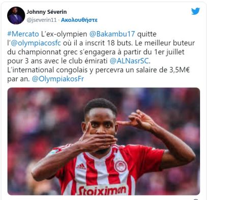 Έτοιμος να υπογράψει στην Αλ Νασρ εμφανίζεται από γαλλικό δημοσίευμα ο Σεντρίκ Μπακαμπού! Σύμφωνα με το ρεπορτάζ ο Κονγκολέζος φορ είναι πολύ κοντά σε συμφωνία με την ομάδα από τα ΗΑΕ για συμβόλαιο τριών ετών και με μυθικά λεφτά.