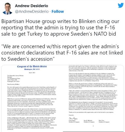 Given the government’s consistent statements that F-16 sales are not linked to Sweden’s accession, we are concerned about these reports. As it becomes increasingly clear that the administration is using every tool at its disposal to pressure Congress and relevant stakeholders to approve the sale of F-16s and modernization kit to Turkey, it is imperative that any agreement protect the broader NATO security interests and not just Sweden’s membership.