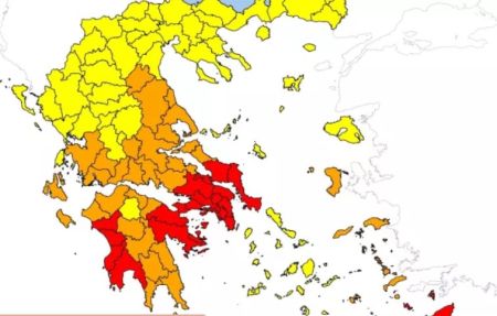 Συγκεκριμένα, ακραίος κίνδυνος πυρκαγιάς – κατάσταση συναγερμού (κατηγορία κινδύνου 5) προβλέπεται αύριο για τις εξής περιοχές: