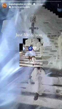 Όπως θα δεις, οι δυο τους ανταλλάσσουν ένα τρυφερό φιλί στο στόμα, ωστόσο η Ευρυδίκη Παπαδοπούλου κρύβει το πρόσωπο του άντρα που της έκλεψε την καρδιά.