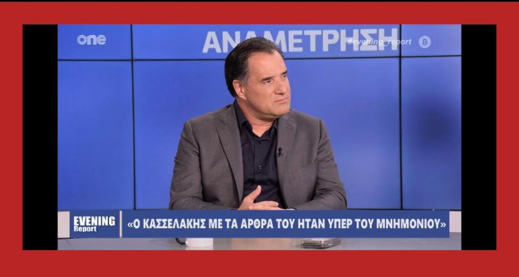 «Εγώ ήμουν στον ΛΑΟΣ», καταλήγει και τονίζει ο Άδωνις, «και ο ΛΑΟΣ ήταν μια διάσπαση της ΝΔ. Ο Γ. Καρατζαφέρης ήταν βουλευτής της ΝΔ. Και εγώ στα νιάτα μου ήμουν οργανωμένος στην ΜΑΚΙ, την ΟΝΝΕΔ και την ΔΑΠ. Κινούμαι λοιπόν σταθερά στην ευρύτερη κεντροδεξιά παράταξη, σε αντίθεση προς το κύριο Κασσελάκη, ο οποίος είναι κανονικός νεοφιλελεύθερος».