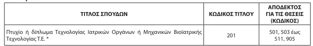 Δ. Στο ΚΕΦΑΛΑΙΟ Α΄, Α.2. ΑΠΑΙΤΟΥΜΕΝΑ ΠΡΟΣΟΝΤΑ (ΕΠΕΞΗΓΗΣΗ ΤΩΝ ΚΩΔΙΚΩΝ ΤΟΥ ΠΙΝΑΚΑ ΚΑΤΑΝΟΜΗΣ ΘΕΣΕΩΝ), Α.2.1. ΠΙΝΑΚΑΣ ΑΠΟΔΕΚΤΩΝ ΤΙΤΛΩΝ ΣΠΟΥΔΩΝ, 2. ΤΕΧΝΟΛΟΓΙΚΗΣ ΕΚΠΑΙΔΕΥΣΗΣ: