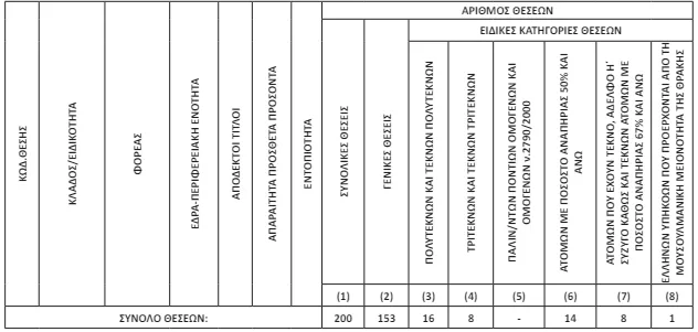 Στην προκήρυξη μπορούν να δηλώσουν συμμετοχή αποκλειστικά υποψήφιοι των κλάδων Πανεπιστημιακής και Τεχνολογικής Εκπαίδευσης, οι οποίοι κατέχουν όλα τα τυπικά και πρόσθετα προσόντα που ζητούνται. Συνολικά ζητούνται υποψήφιοι για να καλύψουν 45 ειδικότητες καίριας σημασίας στον τομέα της Υγείας.