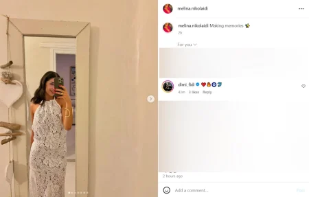 Η κόρη της Δέσποινας Βανδή και του Ντέμη Νικολαΐδη δημοσίευσε στον προσωπικό της λογαριασμό στο Instagram το άλμπουμ φωτογραφιών της από τις καλοκαιρινές διακοπές που έκανε πρόσφατα. Εκεί, είδαμε να της κάνει σχόλιο ο Δημήτρης Φιντιρίκος ο οποίος έβαλε πολλά emoji δείχνοντας πόσο του άρεσαν οι φωτογραφίες της Μελίνας Νικολαΐδη.