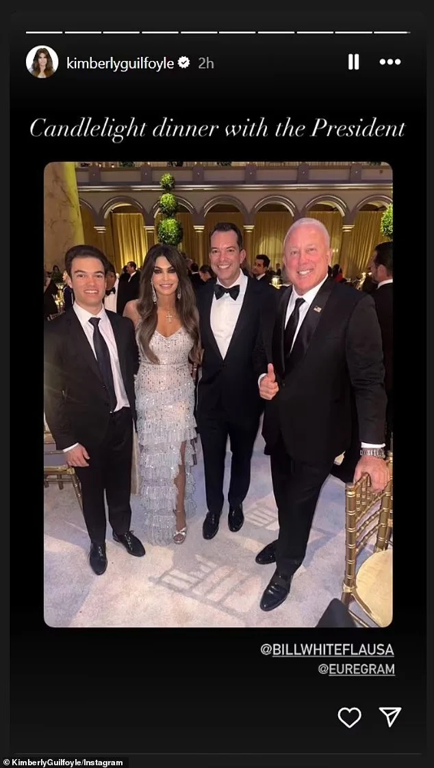 Εν τω μεταξύ, η πρώην αρραβωνιαστικιά του Ντον Τζούνιορ, Κίμπερλι Γκιλφόιλ, 55 ετών, δημοσίευσε στο Instagram φωτογραφία της από το ίδιο δείπνο χθες βράδυ στο οποίο εμφανίστηκε φορώντας μία λευκή τουαλέτα, την ίδια που έβαλε και στο πάρτι των Ελληνοαμερικανών.